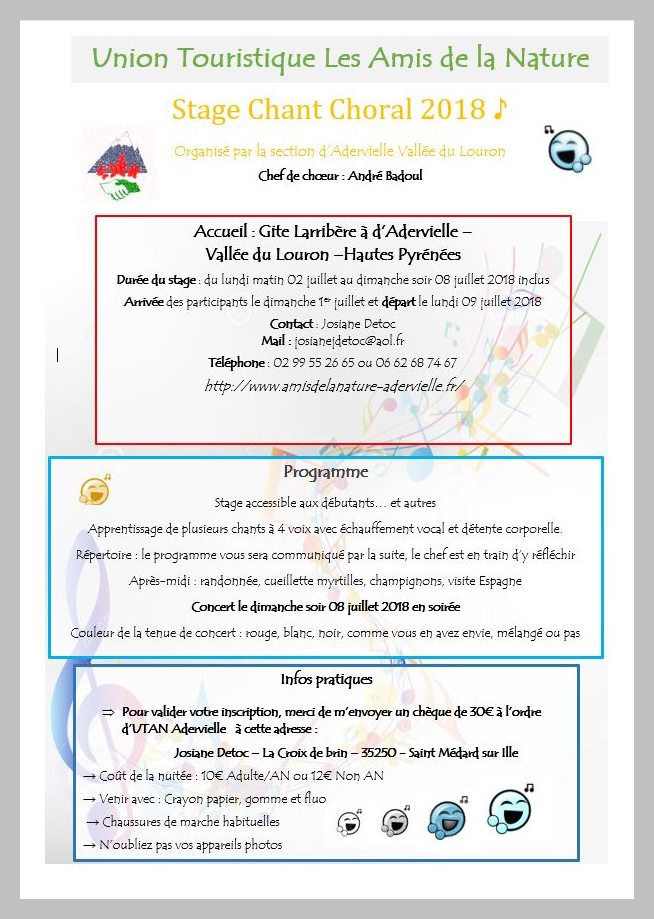 Comme les années passées "Les Amis de la Nature d'Adervielle - Vallée du Louron " dans les hautes Pyrénées organise un stage de chant choral.